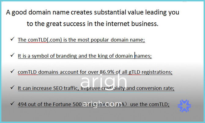 arigh.com and other names on Atom Marketplace do not include Trademarks or business registration. This is because Trademarks are unique to the industry (class) as well as country of the business. Since arigh.com can be purchased by anyone for any use, it would not be possible for us to file a Trademark in advance.