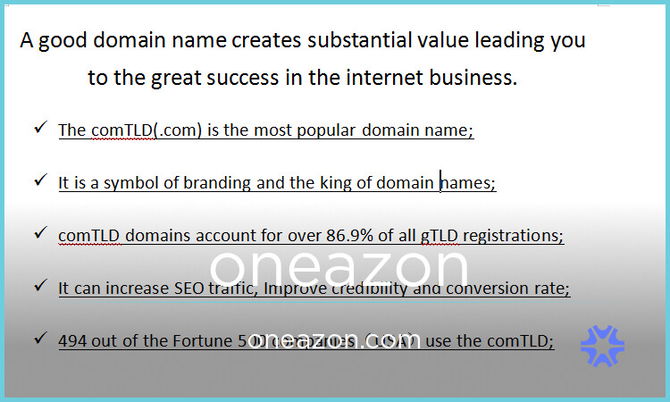 Once you complete the payment for oneazon.com or any other domain, you will have access to our Domain Transfer Center where you can initiate the Domain Transfer. Our Domain Transfer Specialists will assist you with transferring the domain to the registrar of your choice. Typically most transfers are initiated within 24 hours of domain purchase. Learn more about our Domain Transfer Process