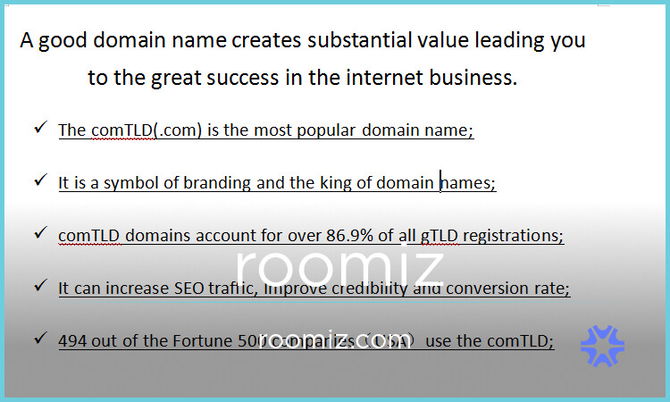 roomiz.com and other names on Atom Marketplace do not include Trademarks or business registration. This is because Trademarks are unique to the industry (class) as well as country of the business. Since roomiz.com can be purchased by anyone for any use, it would not be possible for us to file a Trademark in advance.